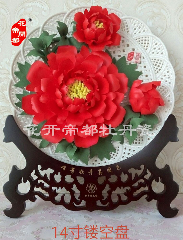 產(chǎn)品系列主要包括:牡丹瓷花盤、牡丹瓷屏風(fēng)、牡丹瓷盆景、牡丹瓷壁掛和牡丹瓷鼎,形式多種多樣!每一件作品都是藝術(shù)的結(jié)晶,花、枝、葉均是手工捏制,造型逼真生動。