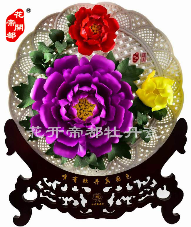 產(chǎn)品系列主要包括:牡丹瓷花盤、牡丹瓷屏風(fēng)、牡丹瓷盆景、牡丹瓷壁掛和牡丹瓷鼎,形式多種多樣!每一件作品都是藝術(shù)的結(jié)晶,花、枝、葉均是手工捏制,造型逼真生動。