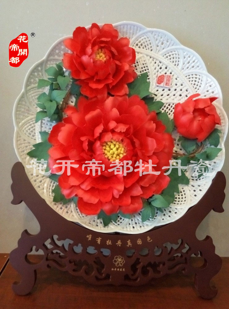 產品系列主要包括:牡丹瓷花盤、牡丹瓷屏風、牡丹瓷盆景、牡丹瓷壁掛和牡丹瓷鼎,形式多種多樣!每一件作品都是藝術的結晶,花、枝、葉均是手工捏制,造型逼真生動。