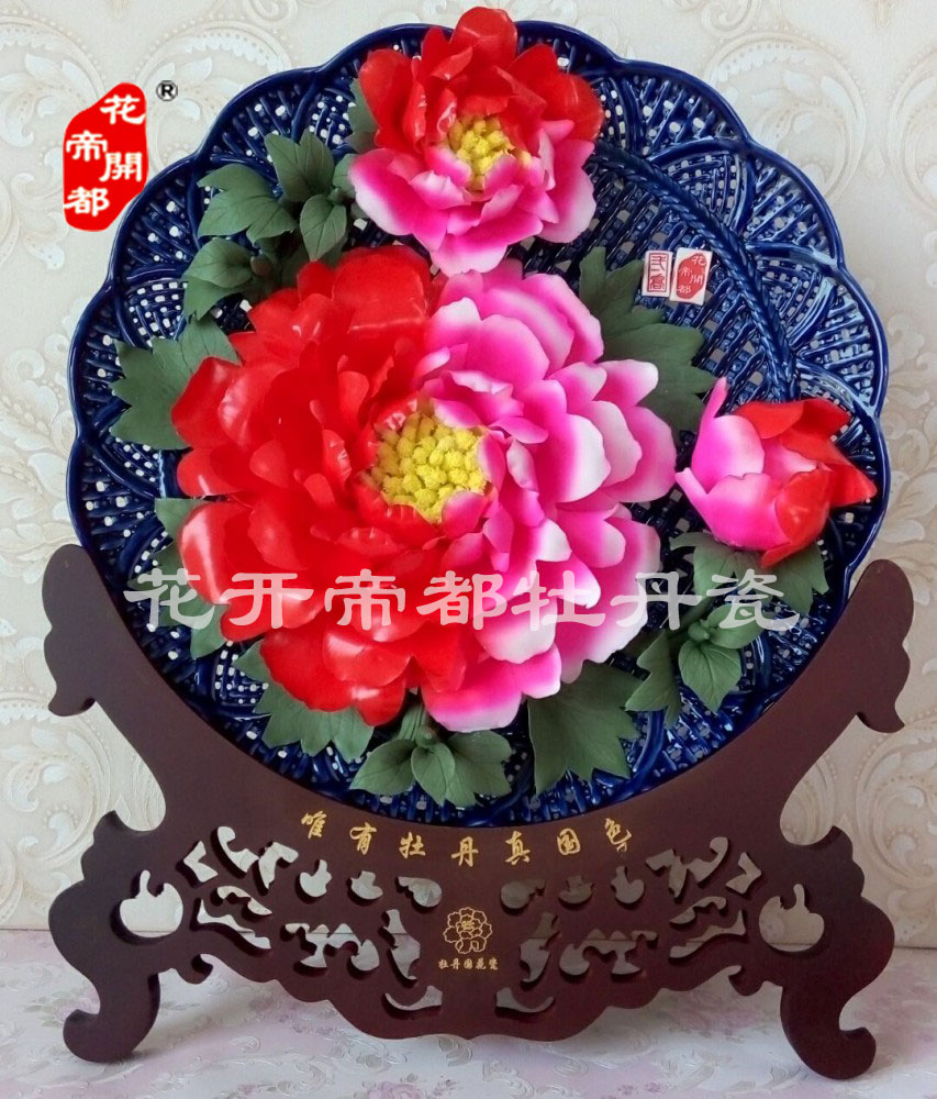 產品系列主要包括:牡丹瓷花盤、牡丹瓷屏風、牡丹瓷盆景、牡丹瓷壁掛和牡丹瓷鼎,形式多種多樣!每一件作品都是藝術的結晶,花、枝、葉均是手工捏制,造型逼真生動。