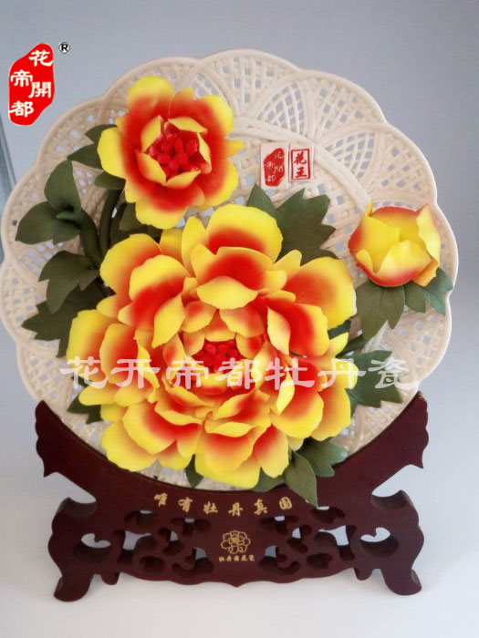 產品系列主要包括:牡丹瓷花盤、牡丹瓷屏風、牡丹瓷盆景、牡丹瓷壁掛和牡丹瓷鼎,形式多種多樣!每一件作品都是藝術的結晶,花、枝、葉均是手工捏制,造型逼真生動。